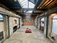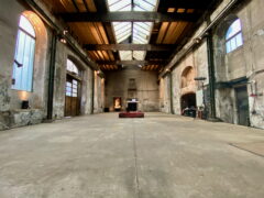 The sound material is shaped by the architecture of the former textile factory, playing a key role in the spatial composition.