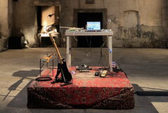 This acoustic presence is actively integrated into the composition, performed in the former factory hall, St. Bartlmä, in Innsbruck. Located by the Sill River and the A12 highway, the hall becomes a resonant space where the music merges with both live sounds and field recordings from the surroundings. The architectural characteristics—shape, size, and material—define the room’s acoustic properties, making the space itself a crucial element of the composition. Sound waves interact with the room, creating resonances, reflections, and dampening effects, shaping and modulating the sonic experience.