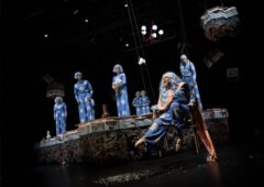 This gives rise to musical-performative sequences in which the text pauses, while sound and movement take over the space.